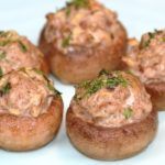 - Stuffed Chicken Breast w/ Cream Sauce - (Served with garlic mashed potatoes or herb roasted red potatoes and chef’s choice of steamed veggies)